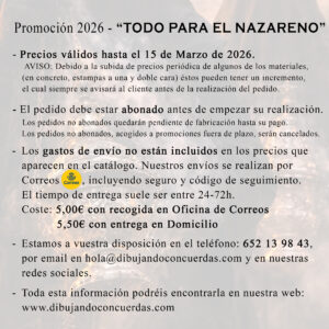 A continuación, te dejamos nuestro catálogo de Todo Para El Nazareno 2026. Para cualquier duda o consulta, puedes ponerte en contacto con nosotros a través de WhatsApp, Email y nuestras redes sociales.